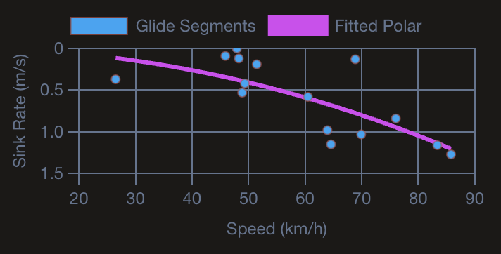 Glide phases are plotted on a polar diagram, showing the measured sink at different speeds.